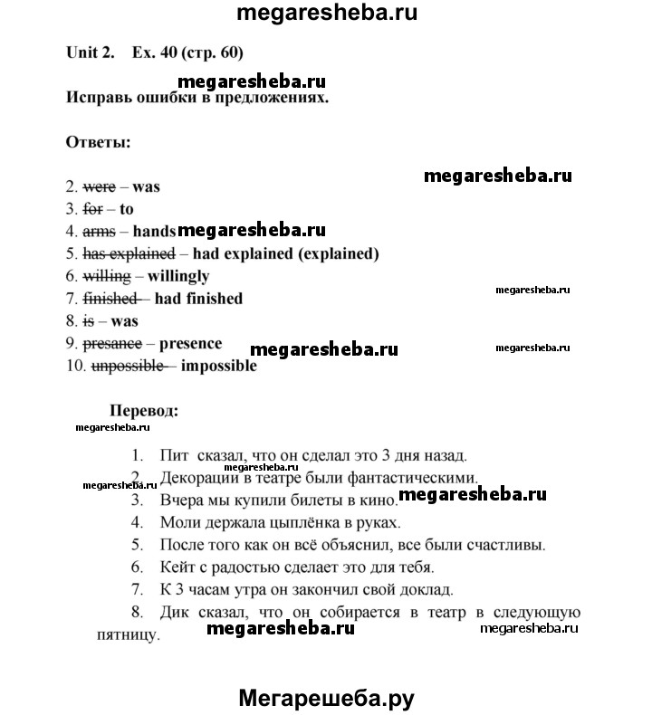 Подробный решебник (ГДЗ) по Английскому языку за 8 (восьмой) класс лексико-грамматический практикум rainbow - готовый ответ страница - 60. Авторы учебника: Афанасьева, Михеева, Баранова. Издательство: Дрофа 2016-2024.