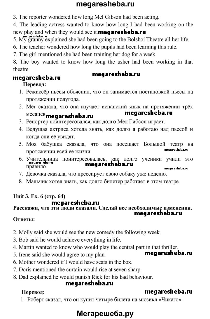 Подробный решебник (ГДЗ) по Английскому языку за 8 (восьмой) класс лексико-грамматический практикум rainbow - готовый ответ страница - 64. Авторы учебника: Афанасьева, Михеева, Баранова. Издательство: Дрофа 2016-2024.