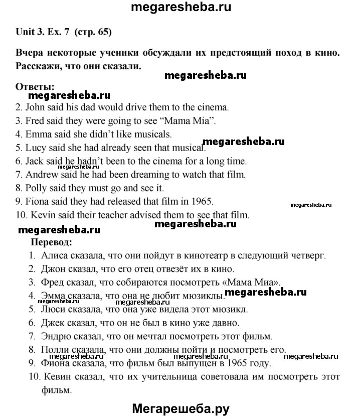 Подробный решебник (ГДЗ) по Английскому языку за 8 (восьмой) класс лексико-грамматический практикум rainbow - готовый ответ страница - 65. Авторы учебника: Афанасьева, Михеева, Баранова. Издательство: Дрофа 2016-2024.