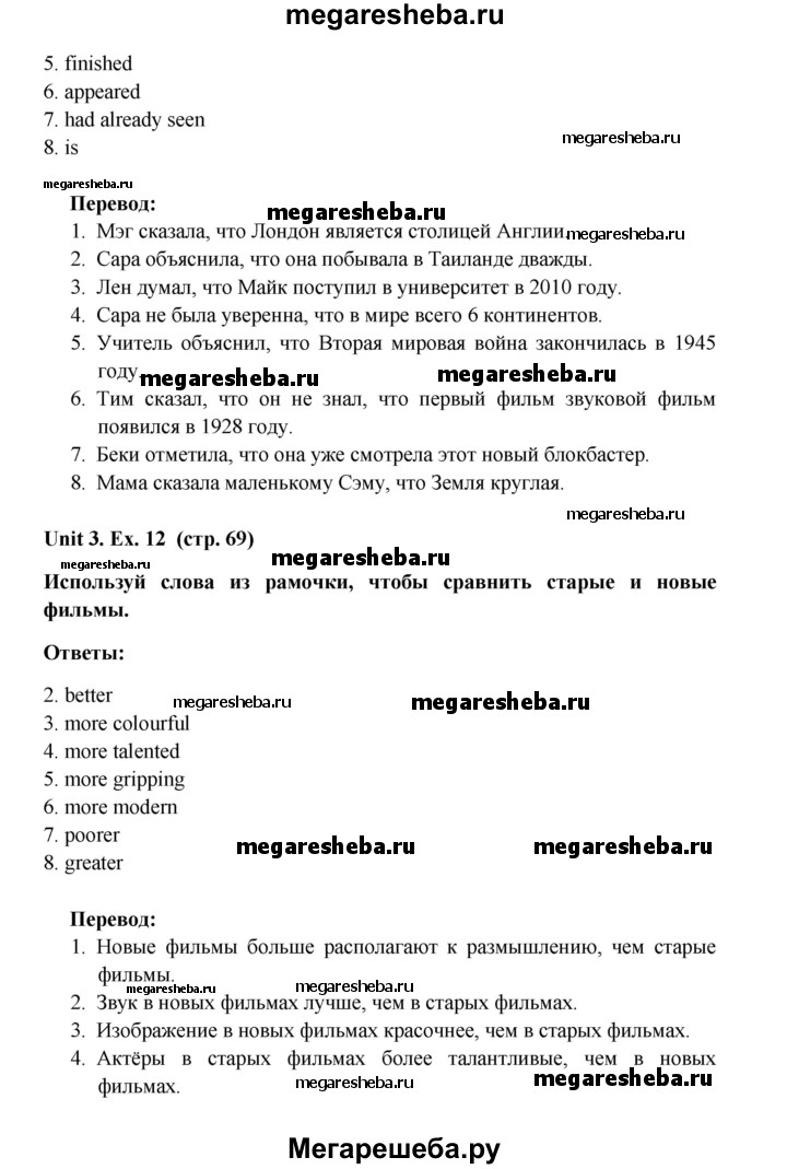 Подробный решебник (ГДЗ) по Английскому языку за 8 (восьмой) класс лексико-грамматический практикум rainbow - готовый ответ страница - 69. Авторы учебника: Афанасьева, Михеева, Баранова. Издательство: Дрофа 2016-2024.