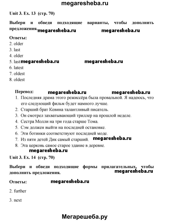 Подробный решебник (ГДЗ) по Английскому языку за 8 (восьмой) класс лексико-грамматический практикум rainbow - готовый ответ страница - 70. Авторы учебника: Афанасьева, Михеева, Баранова. Издательство: Дрофа 2016-2024.