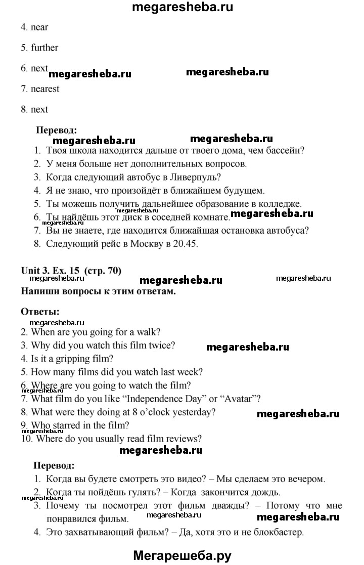 ГДЗ по английскому языку 8 класс Афанасьева лексико-грамматический практикум rainbow страница - 70