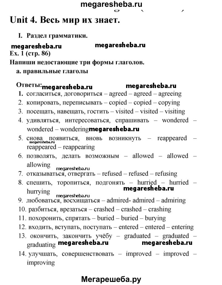 ГДЗ по английскому языку 8 класс Афанасьева лексико-грамматический практикум rainbow страница - 86
