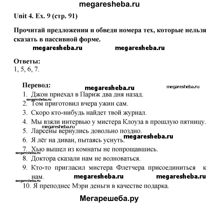 Подробный решебник (ГДЗ) по Английскому языку за 8 (восьмой) класс лексико-грамматический практикум rainbow - готовый ответ страница - 91. Авторы учебника: Афанасьева, Михеева, Баранова. Издательство: Дрофа 2016-2024.