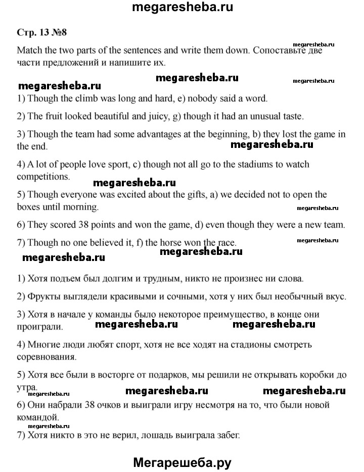 Подробный решебник (ГДЗ) по Английскому языку за 8 (восьмой) класс rainbow - готовый ответ часть 1. страница - 13. Авторы учебника: Афанасьева, Михеева, Баранова. Издательство: Дрофа 2016-2024.