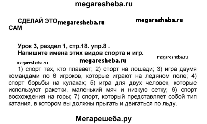 Подробный решебник (ГДЗ) по Английскому языку за 8 (восьмой) класс rainbow - готовый ответ часть 1. страница - 18. Авторы учебника: Афанасьева, Михеева, Баранова. Издательство: Дрофа 2016-2024.