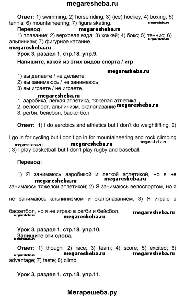 ГДЗ по английскому языку 8 класс Афанасьева rainbow часть 1. страница - 18