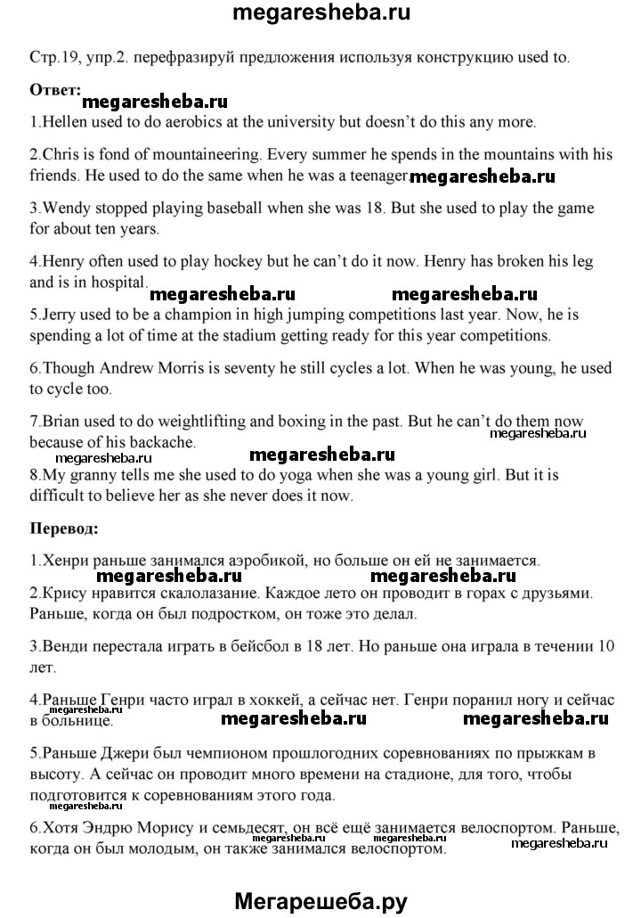 Подробный решебник (ГДЗ) по Английскому языку за 8 (восьмой) класс rainbow - готовый ответ часть 1. страница - 19. Авторы учебника: Афанасьева, Михеева, Баранова. Издательство: Дрофа 2016-2024.
