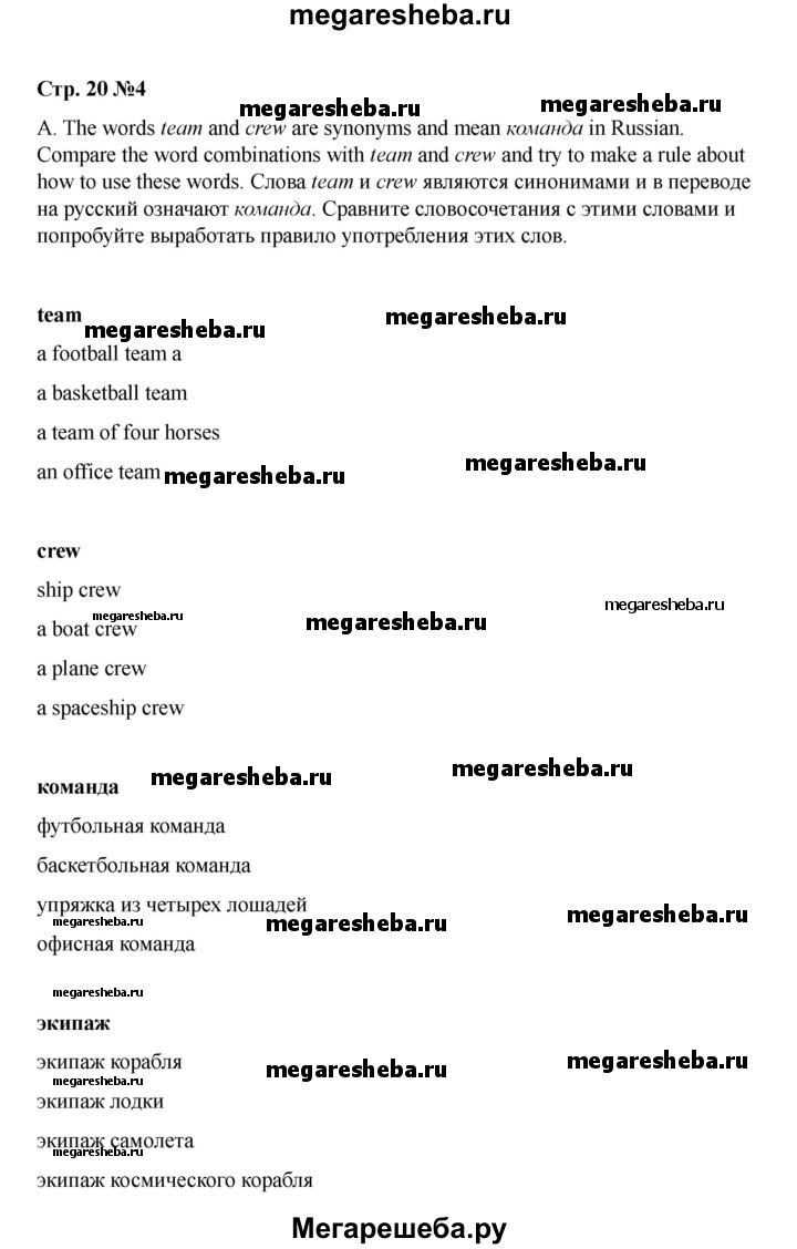 Подробный решебник (ГДЗ) по Английскому языку за 8 (восьмой) класс rainbow - готовый ответ часть 1. страница - 20. Авторы учебника: Афанасьева, Михеева, Баранова. Издательство: Дрофа 2016-2024.