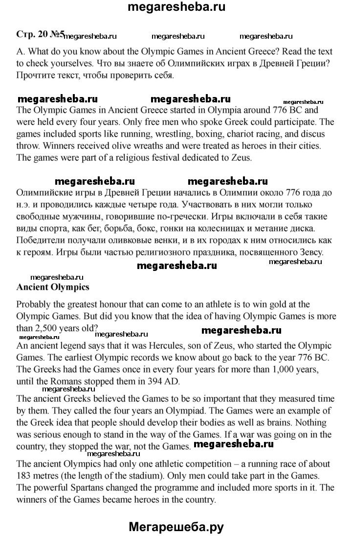 ГДЗ по английскому языку 8 класс Афанасьева rainbow часть 1. страница - 20