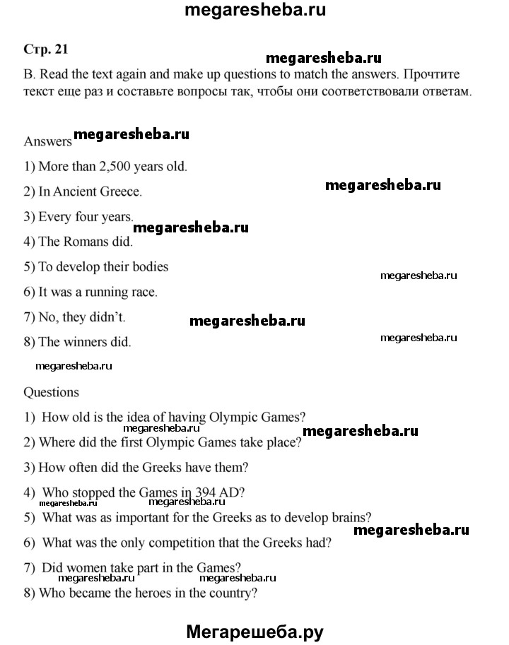 ГДЗ по английскому языку 8 класс Афанасьева rainbow часть 1. страница - 21