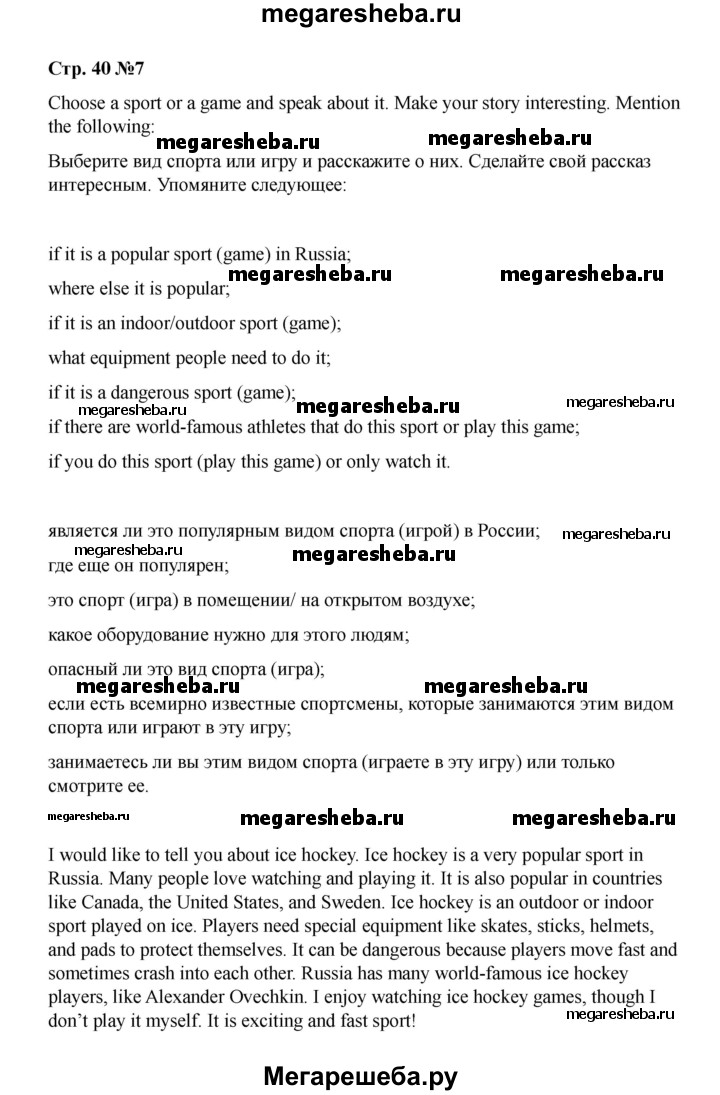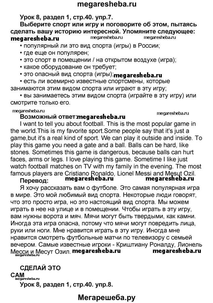 Подробный решебник (ГДЗ) по Английскому языку за 8 (восьмой) класс rainbow - готовый ответ часть 1. страница - 40. Авторы учебника: Афанасьева, Михеева, Баранова. Издательство: Дрофа 2016-2024.