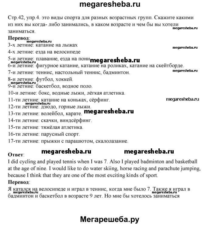 ГДЗ по английскому языку 8 класс Афанасьева rainbow часть 1. страница - 42