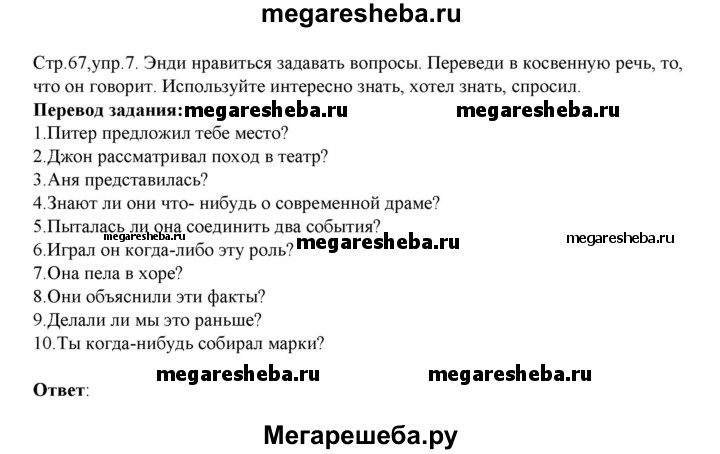 Подробный решебник (ГДЗ) по Английскому языку за 8 (восьмой) класс rainbow - готовый ответ часть 1. страница - 67. Авторы учебника: Афанасьева, Михеева, Баранова. Издательство: Дрофа 2016-2024.