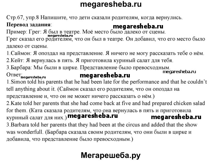 ГДЗ по английскому языку 8 класс Афанасьева rainbow часть 1. страница - 67