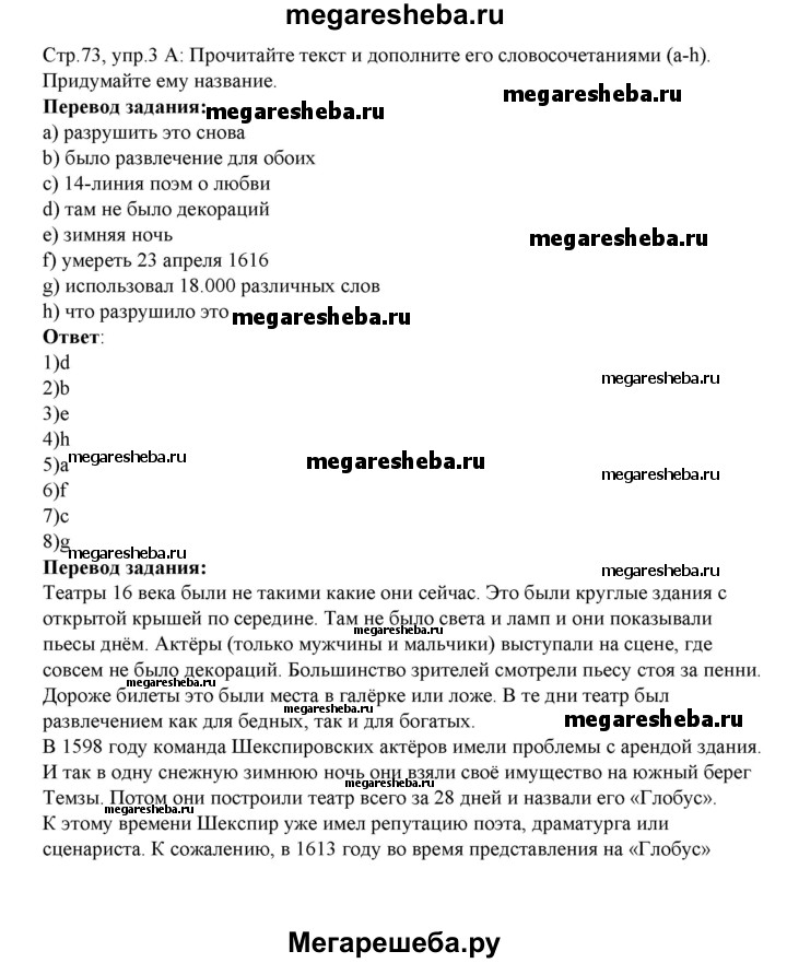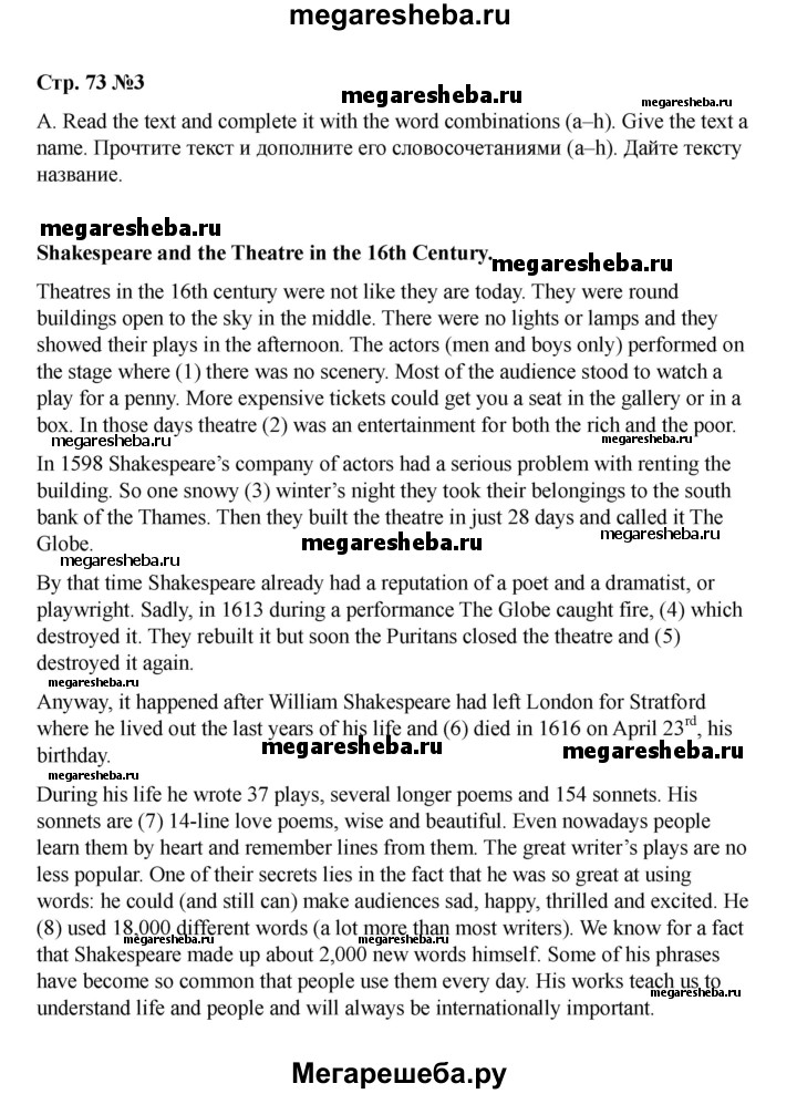ГДЗ по английскому языку 8 класс Афанасьева rainbow часть 1. страница - 73