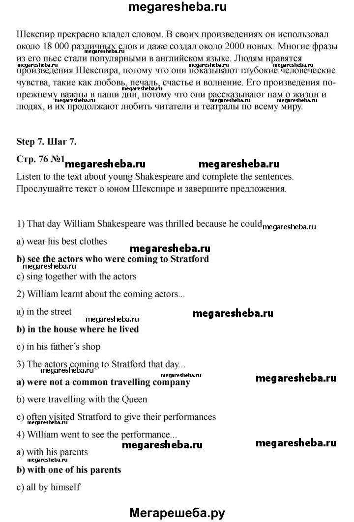 ГДЗ по английскому языку 8 класс Афанасьева rainbow часть 1. страница - 76
