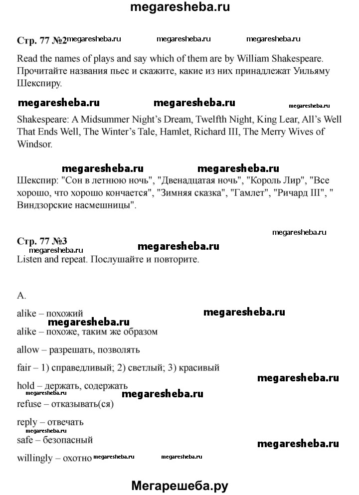ГДЗ по английскому языку 8 класс Афанасьева rainbow часть 1. страница - 77