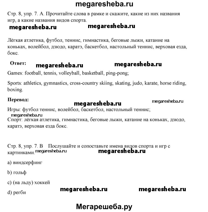 ГДЗ по английскому языку 8 класс Афанасьева rainbow часть 1. страница - 8