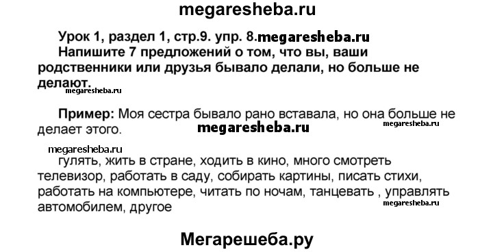 Подробный решебник (ГДЗ) по Английскому языку за 8 (восьмой) класс rainbow - готовый ответ часть 1. страница - 9. Авторы учебника: Афанасьева, Михеева, Баранова. Издательство: Дрофа 2016-2024.