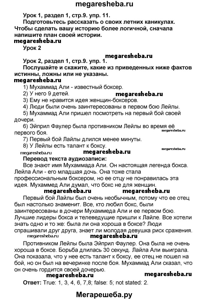 ГДЗ по английскому языку 8 класс Афанасьева rainbow часть 1. страница - 9