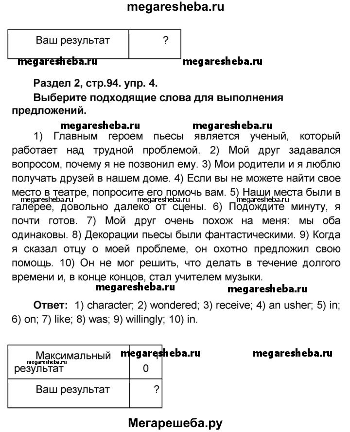 ГДЗ по английскому языку 8 класс Афанасьева rainbow часть 1. страница - 94