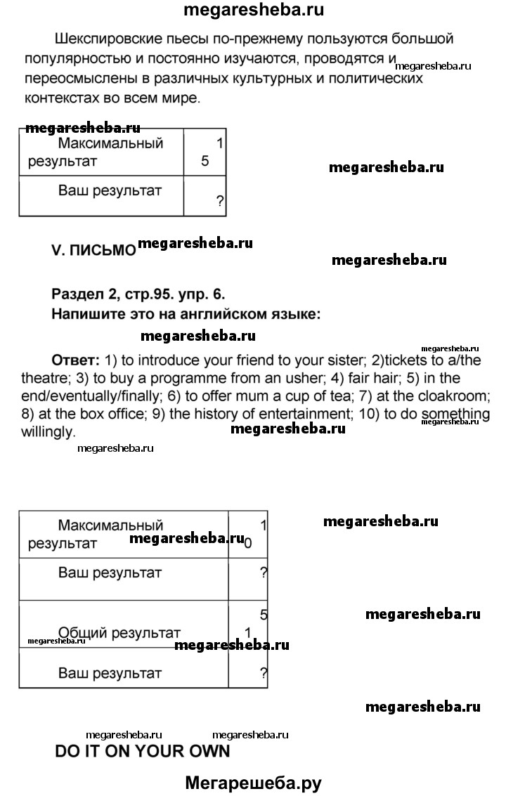 ГДЗ по английскому языку 8 класс Афанасьева rainbow часть 1. страница - 95