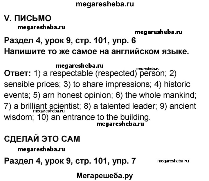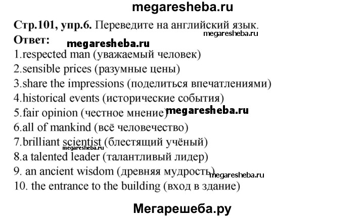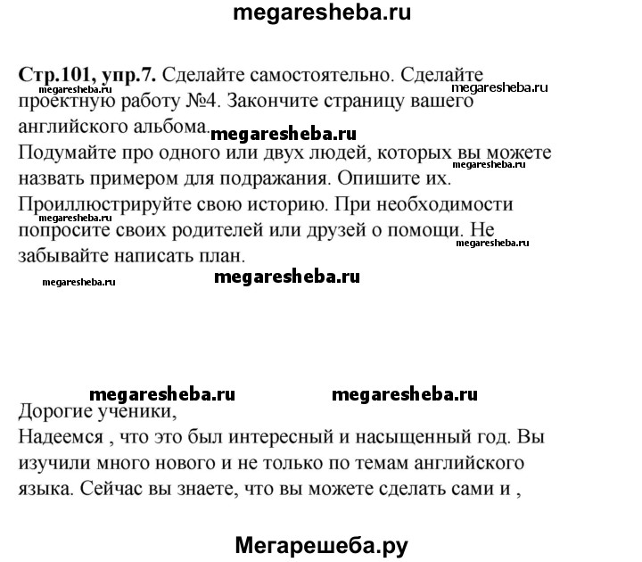 Подробный решебник (ГДЗ) по Английскому языку за 8 (восьмой) класс rainbow - готовый ответ часть 2. страница - 101. Авторы учебника: Афанасьева, Михеева, Баранова. Издательство: Дрофа 2016-2024.