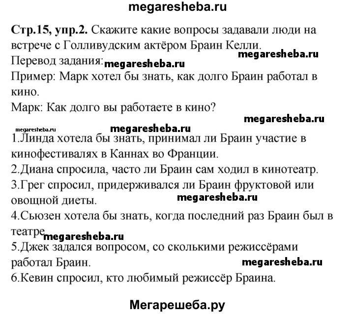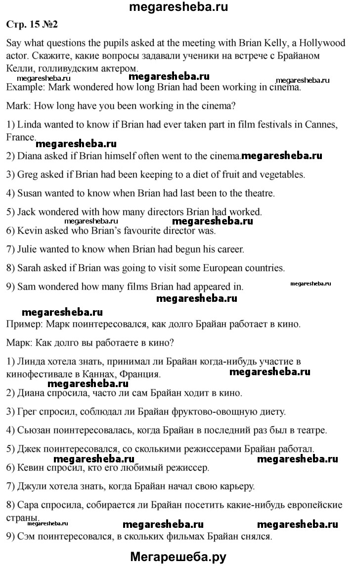 Подробный решебник (ГДЗ) по Английскому языку за 8 (восьмой) класс rainbow - готовый ответ часть 2. страница - 15. Авторы учебника: Афанасьева, Михеева, Баранова. Издательство: Дрофа 2016-2024.