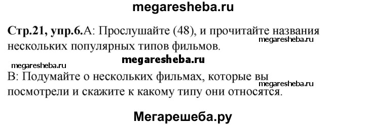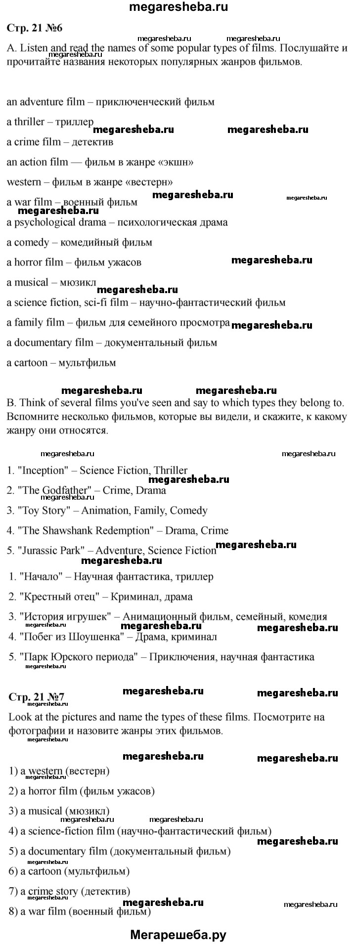 Подробный решебник (ГДЗ) по Английскому языку за 8 (восьмой) класс rainbow - готовый ответ часть 2. страница - 21. Авторы учебника: Афанасьева, Михеева, Баранова. Издательство: Дрофа 2016-2024.