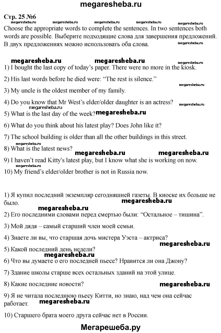 Подробный решебник (ГДЗ) по Английскому языку за 8 (восьмой) класс rainbow - готовый ответ часть 2. страница - 25. Авторы учебника: Афанасьева, Михеева, Баранова. Издательство: Дрофа 2016-2024.