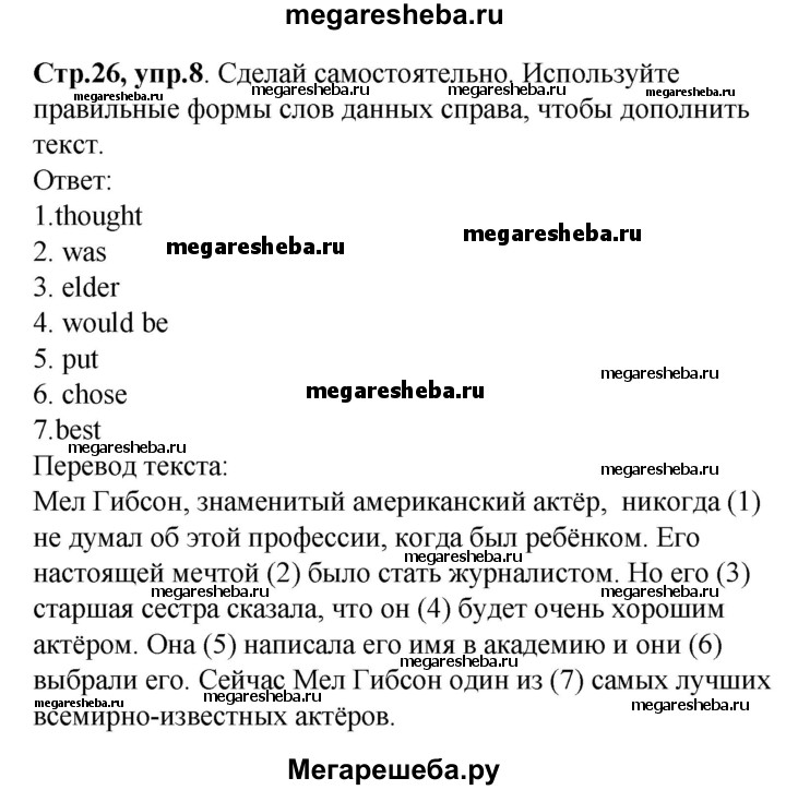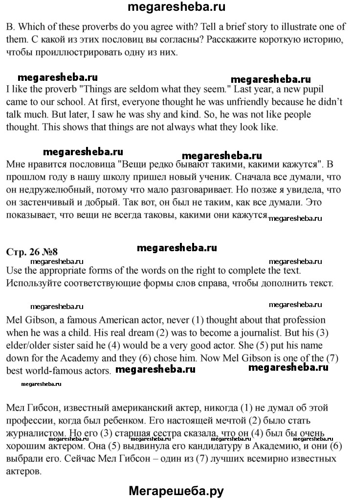 Подробный решебник (ГДЗ) по Английскому языку за 8 (восьмой) класс rainbow - готовый ответ часть 2. страница - 26. Авторы учебника: Афанасьева, Михеева, Баранова. Издательство: Дрофа 2016-2024.