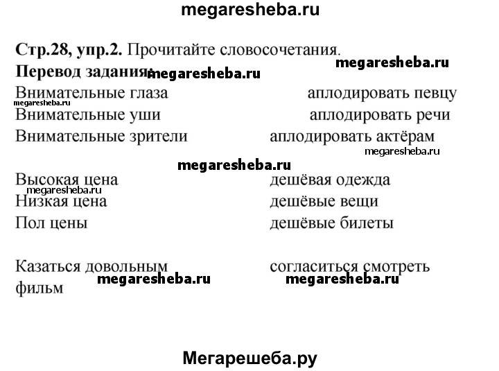 Подробный решебник (ГДЗ) по Английскому языку за 8 (восьмой) класс rainbow - готовый ответ часть 2. страница - 28. Авторы учебника: Афанасьева, Михеева, Баранова. Издательство: Дрофа 2016-2024.