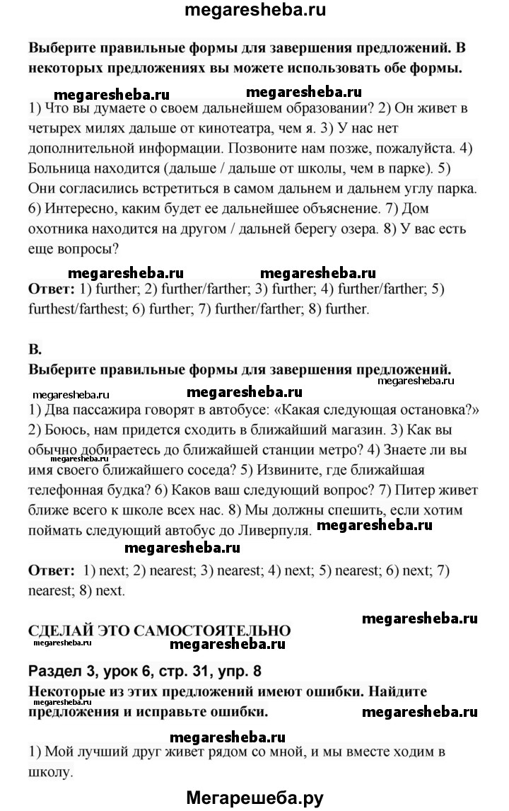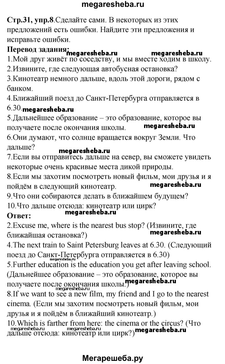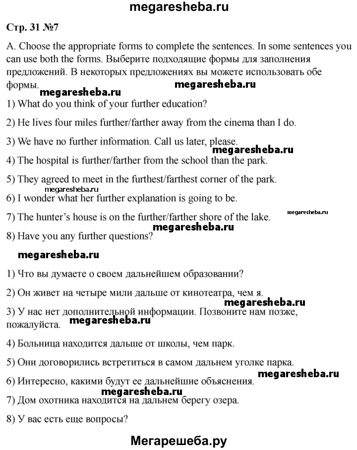 Подробный решебник (ГДЗ) по Английскому языку за 8 (восьмой) класс rainbow - готовый ответ часть 2. страница - 31. Авторы учебника: Афанасьева, Михеева, Баранова. Издательство: Дрофа 2016-2024.