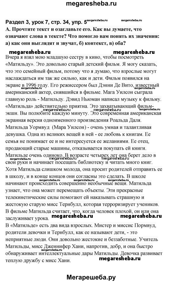 Подробный решебник (ГДЗ) по Английскому языку за 8 (восьмой) класс rainbow - готовый ответ часть 2. страница - 34. Авторы учебника: Афанасьева, Михеева, Баранова. Издательство: Дрофа 2016-2024.