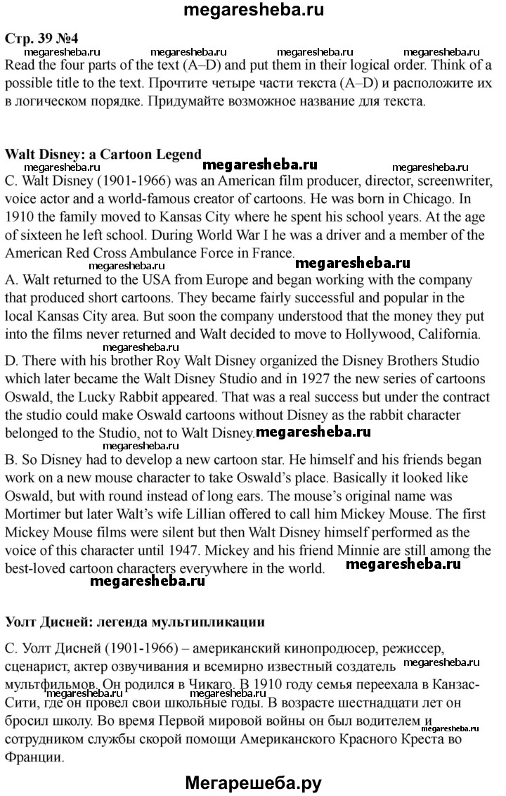 ГДЗ по английскому языку 8 класс Афанасьева rainbow часть 2. страница - 39