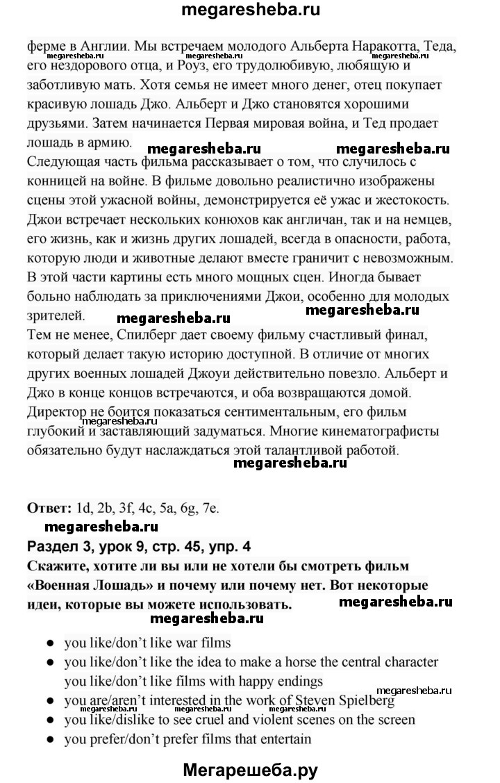 Подробный решебник (ГДЗ) по Английскому языку за 8 (восьмой) класс rainbow - готовый ответ часть 2. страница - 45. Авторы учебника: Афанасьева, Михеева, Баранова. Издательство: Дрофа 2016-2024.