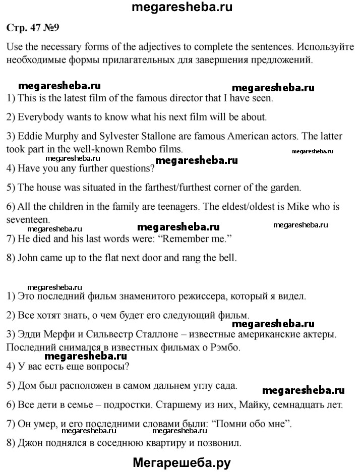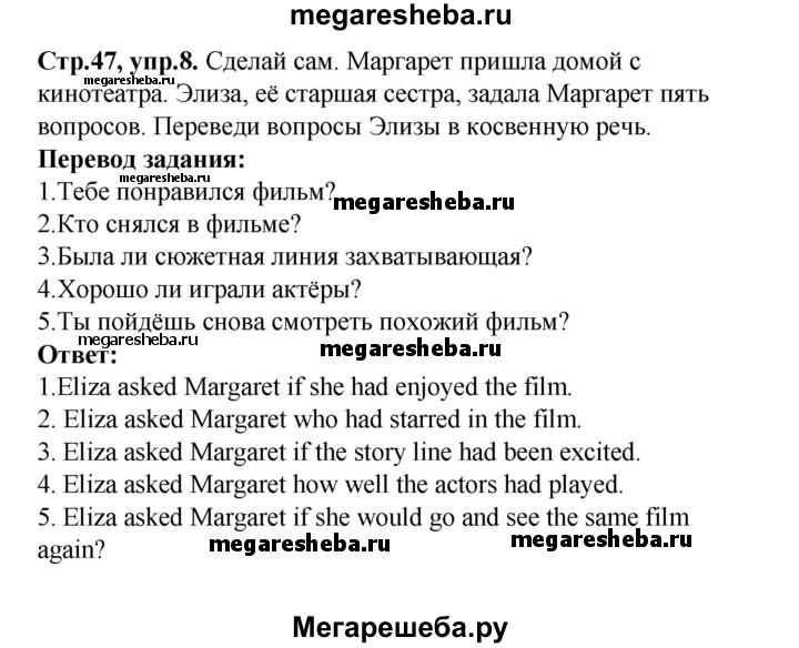 Подробный решебник (ГДЗ) по Английскому языку за 8 (восьмой) класс rainbow - готовый ответ часть 2. страница - 47. Авторы учебника: Афанасьева, Михеева, Баранова. Издательство: Дрофа 2016-2024.