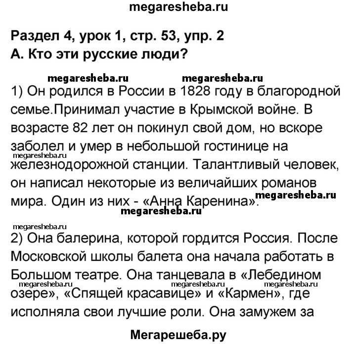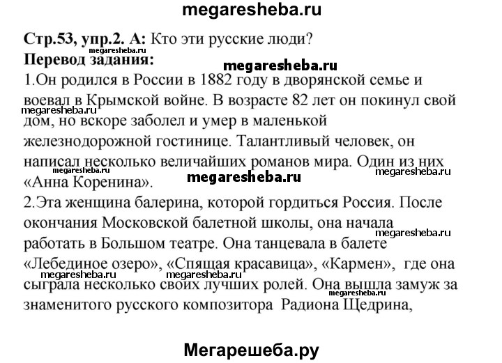 Подробный решебник (ГДЗ) по Английскому языку за 8 (восьмой) класс rainbow - готовый ответ часть 2. страница - 53. Авторы учебника: Афанасьева, Михеева, Баранова. Издательство: Дрофа 2016-2024.