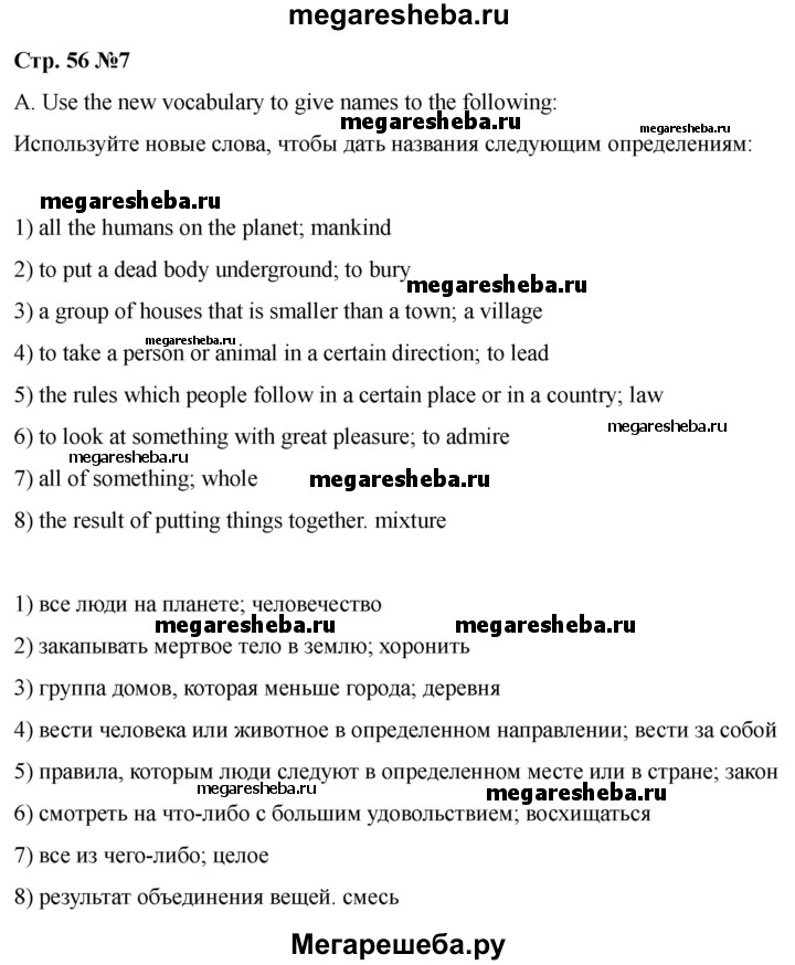 Подробный решебник (ГДЗ) по Английскому языку за 8 (восьмой) класс rainbow - готовый ответ часть 2. страница - 56. Авторы учебника: Афанасьева, Михеева, Баранова. Издательство: Дрофа 2016-2024.