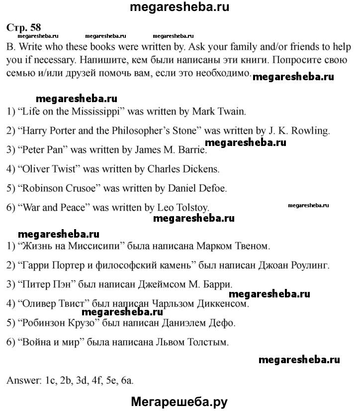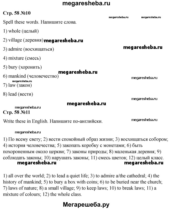 Подробный решебник (ГДЗ) по Английскому языку за 8 (восьмой) класс rainbow - готовый ответ часть 2. страница - 58. Авторы учебника: Афанасьева, Михеева, Баранова. Издательство: Дрофа 2016-2024.