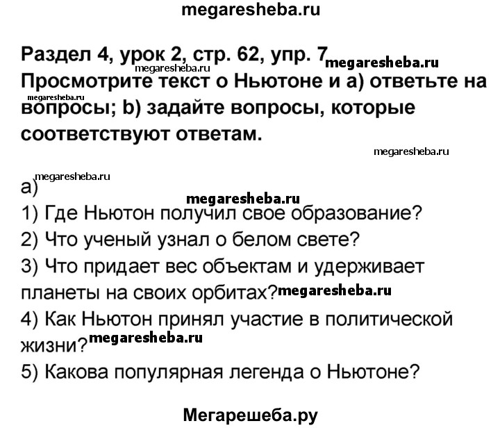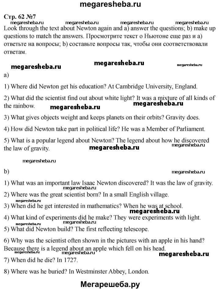 Подробный решебник (ГДЗ) по Английскому языку за 8 (восьмой) класс rainbow - готовый ответ часть 2. страница - 62. Авторы учебника: Афанасьева, Михеева, Баранова. Издательство: Дрофа 2016-2024.