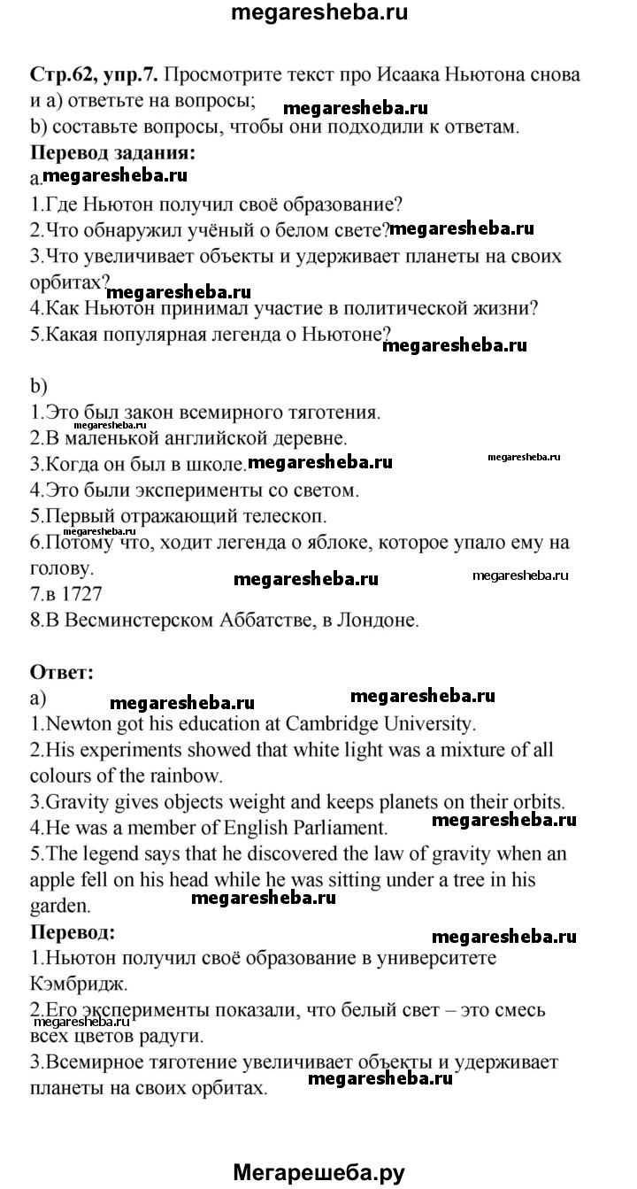 ГДЗ по английскому языку 8 класс Афанасьева rainbow часть 2. страница - 62