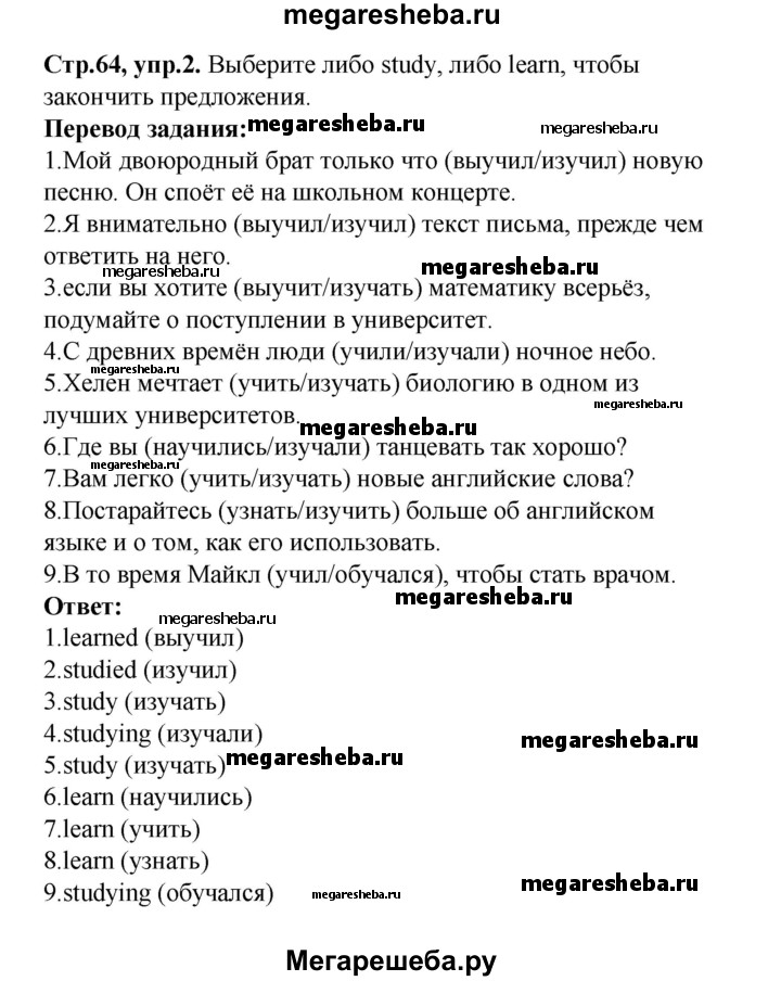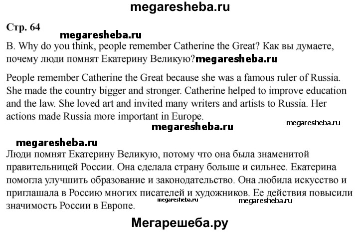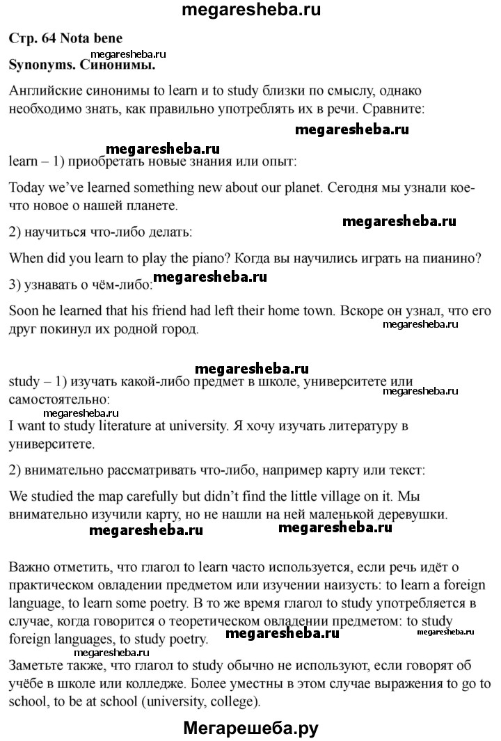 Подробный решебник (ГДЗ) по Английскому языку за 8 (восьмой) класс rainbow - готовый ответ часть 2. страница - 64. Авторы учебника: Афанасьева, Михеева, Баранова. Издательство: Дрофа 2016-2024.