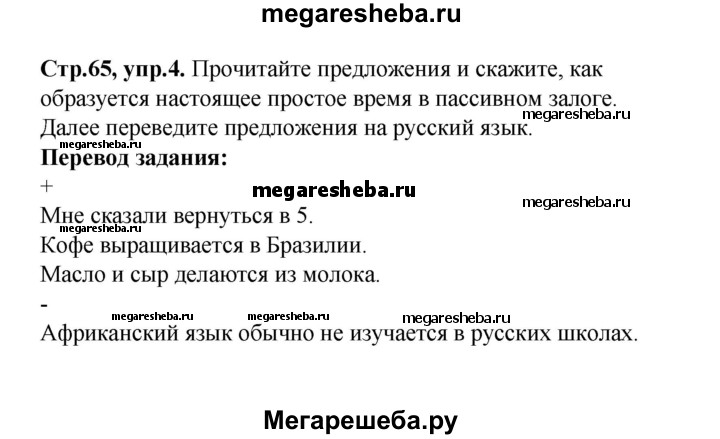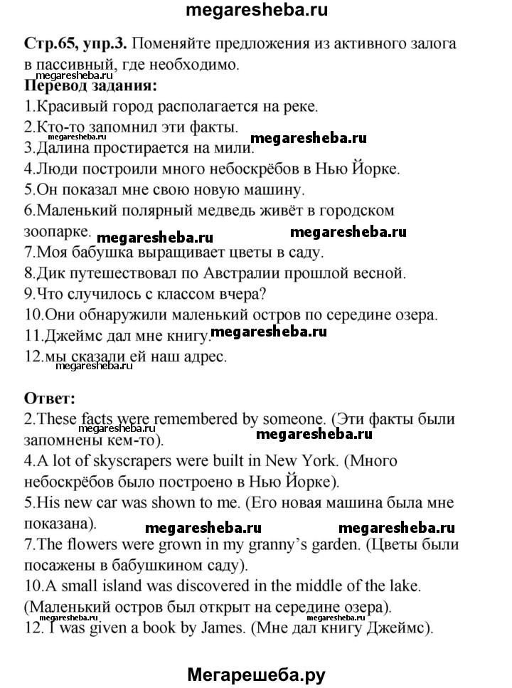 Подробный решебник (ГДЗ) по Английскому языку за 8 (восьмой) класс rainbow - готовый ответ часть 2. страница - 65. Авторы учебника: Афанасьева, Михеева, Баранова. Издательство: Дрофа 2016-2024.