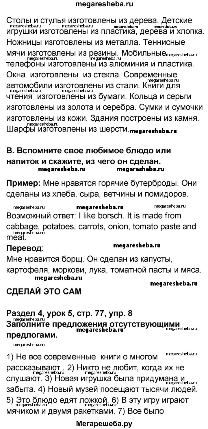 Подробный решебник (ГДЗ) по Английскому языку за 8 (восьмой) класс rainbow - готовый ответ часть 2. страница - 77. Авторы учебника: Афанасьева, Михеева, Баранова. Издательство: Дрофа 2016-2024.