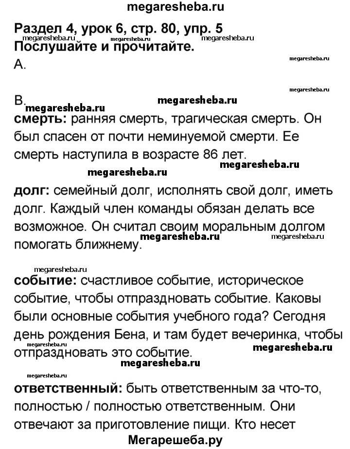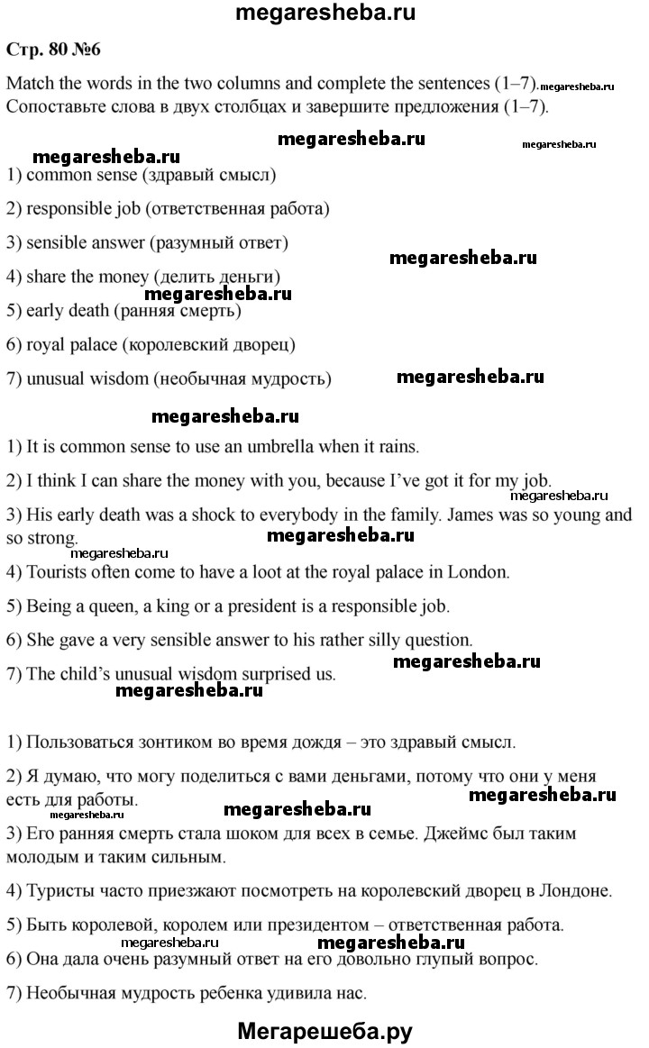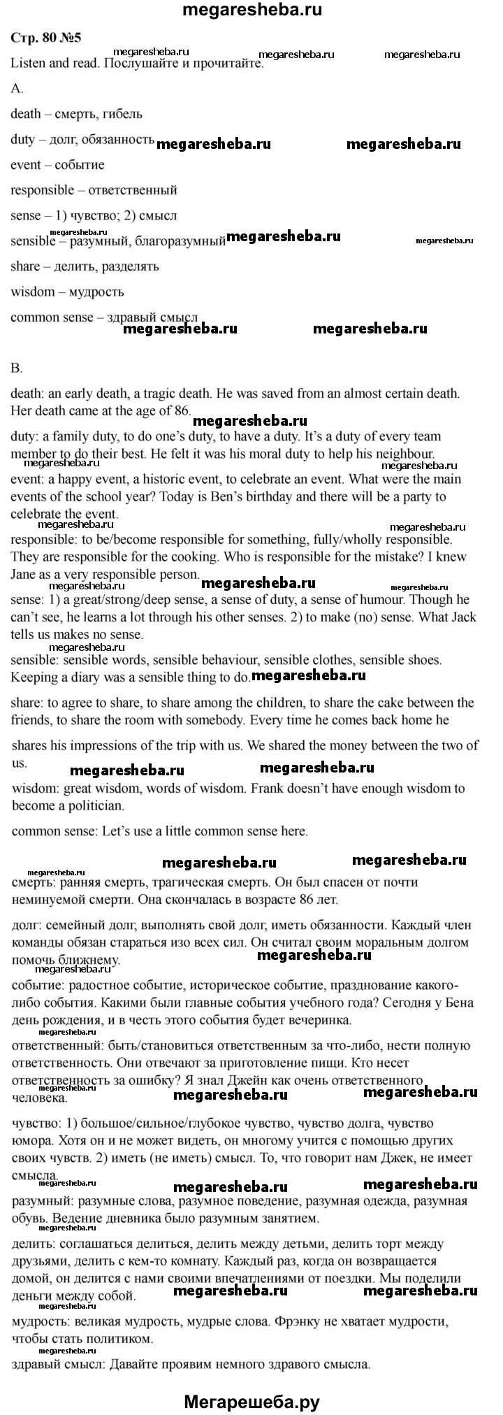 Подробный решебник (ГДЗ) по Английскому языку за 8 (восьмой) класс rainbow - готовый ответ часть 2. страница - 80. Авторы учебника: Афанасьева, Михеева, Баранова. Издательство: Дрофа 2016-2024.