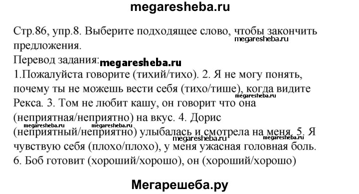 Подробный решебник (ГДЗ) по Английскому языку за 8 (восьмой) класс rainbow - готовый ответ часть 2. страница - 86. Авторы учебника: Афанасьева, Михеева, Баранова. Издательство: Дрофа 2016-2024.