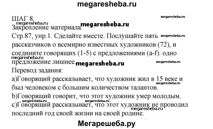 Подробный решебник (ГДЗ) по Английскому языку за 8 (восьмой) класс rainbow - готовый ответ часть 2. страница - 87. Авторы учебника: Афанасьева, Михеева, Баранова. Издательство: Дрофа 2016-2024.
