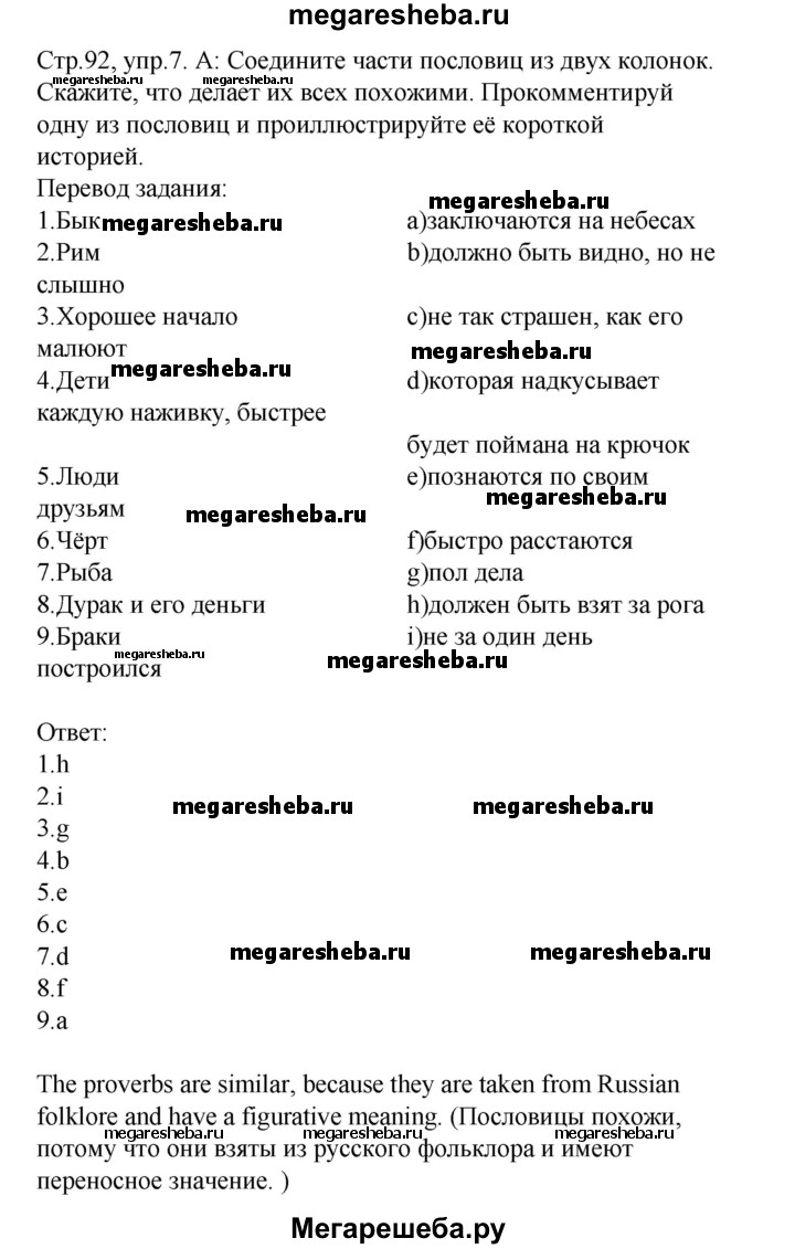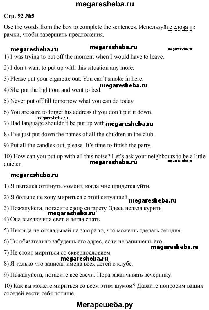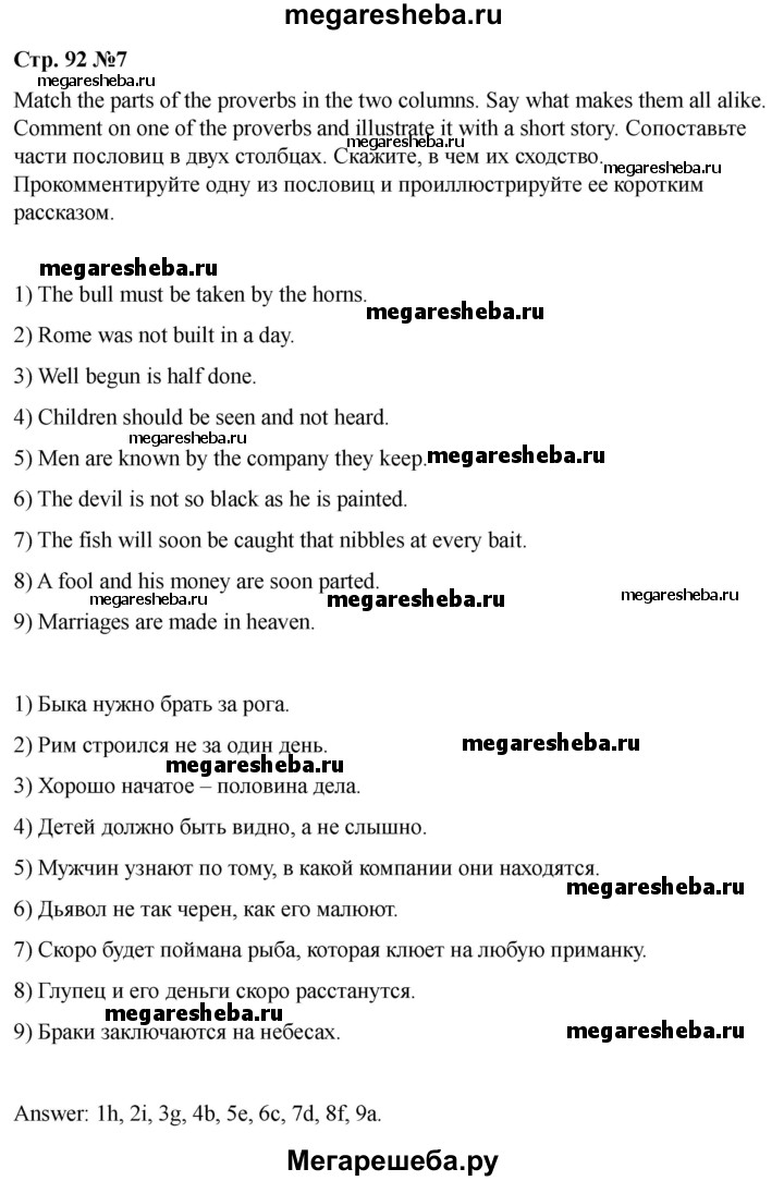 Подробный решебник (ГДЗ) по Английскому языку за 8 (восьмой) класс rainbow - готовый ответ часть 2. страница - 92. Авторы учебника: Афанасьева, Михеева, Баранова. Издательство: Дрофа 2016-2024.